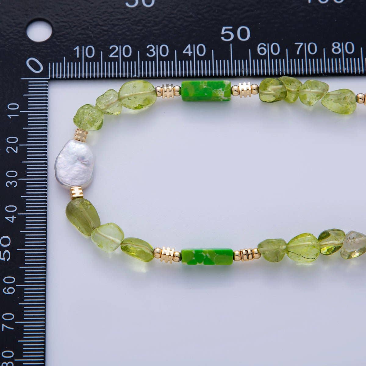 16K Gold Filled Freshwater Pearl Peridot Green Gemstone 16 Inch Handmade Necklace | WA-3179