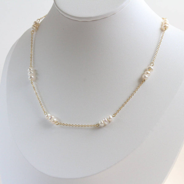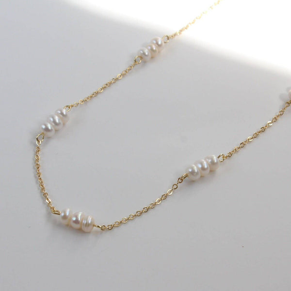 Dainty Freshwater Pearl Necklace, Floating Pearl Station Layering Necklace Handmade, June Birthstone A real freshwater pearl necklace made of authentic pearl and high quality gold plating chian. A delicate piece of jewelry that will elevate any outfit. This necklace features...