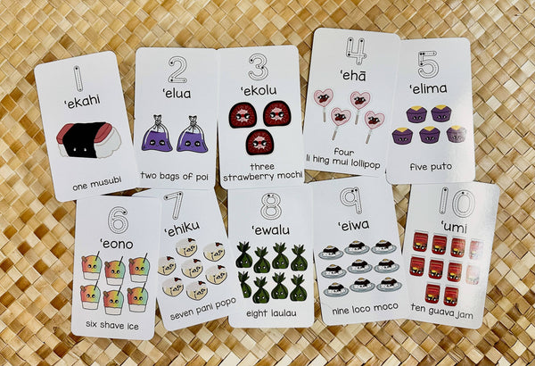 Teach your keiki (child) colors, shapes and numbers with these local Hawaiʻi themed flash cards! Each card includes an originally designed illustration along with words in both English and ʻŌlelo Hawaiʻi (Hawaiian Language)! These flash cards measure to be 3”x5”...
