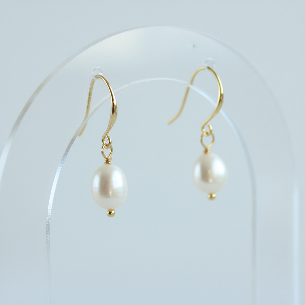 Minimal Freshwater Pearl Dangle Earrings (1E04a)