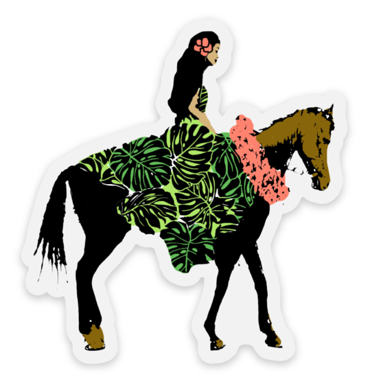 The Pa'u Riders are wahine horseback riders who wear long, colorful skirts. The pa'u princess is accompanied by a page and ladies in waiting, as well as accompanying paniolo escorts, all on decorated horseback.