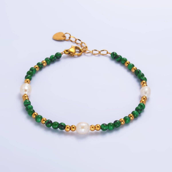 Material: Brass over Stainless Steel, Freshwater Pearl, Malachite