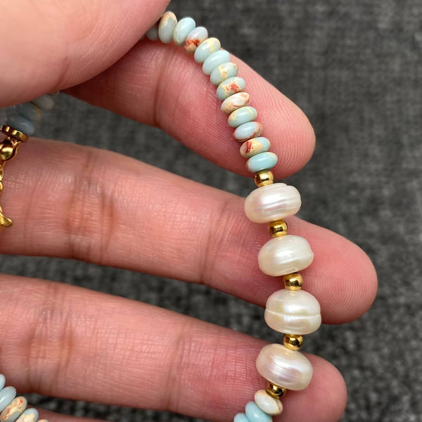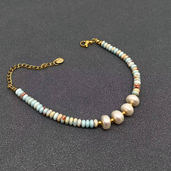 Type: bracelet Material: 316L Stainless steel, Stone , Pearl ,18K gold plated Size : Stone - 5mm , Pearl - 6mm Length of chain :175mm +50mm Process: vacuum electroplating and manual polishing,Non tarnish Surface : High Polish ★Made of high...
